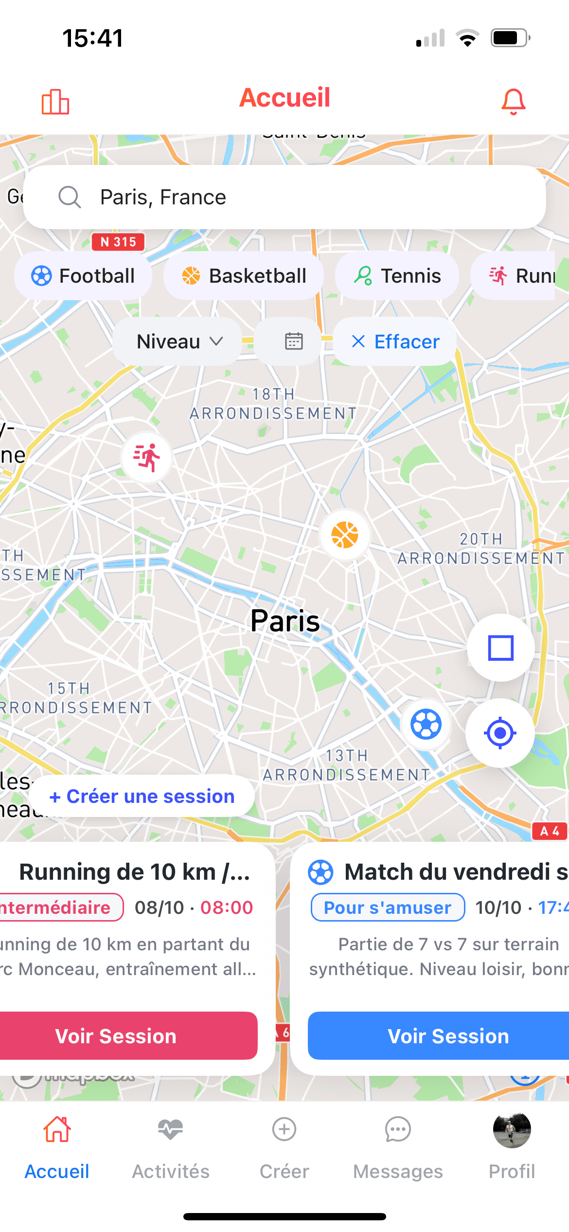 Rejoins une activité près de chez toi ou lance la tienne. Foot, basket, vélo, padel, tennis, ect… il y a toujours une session à ton niveau.