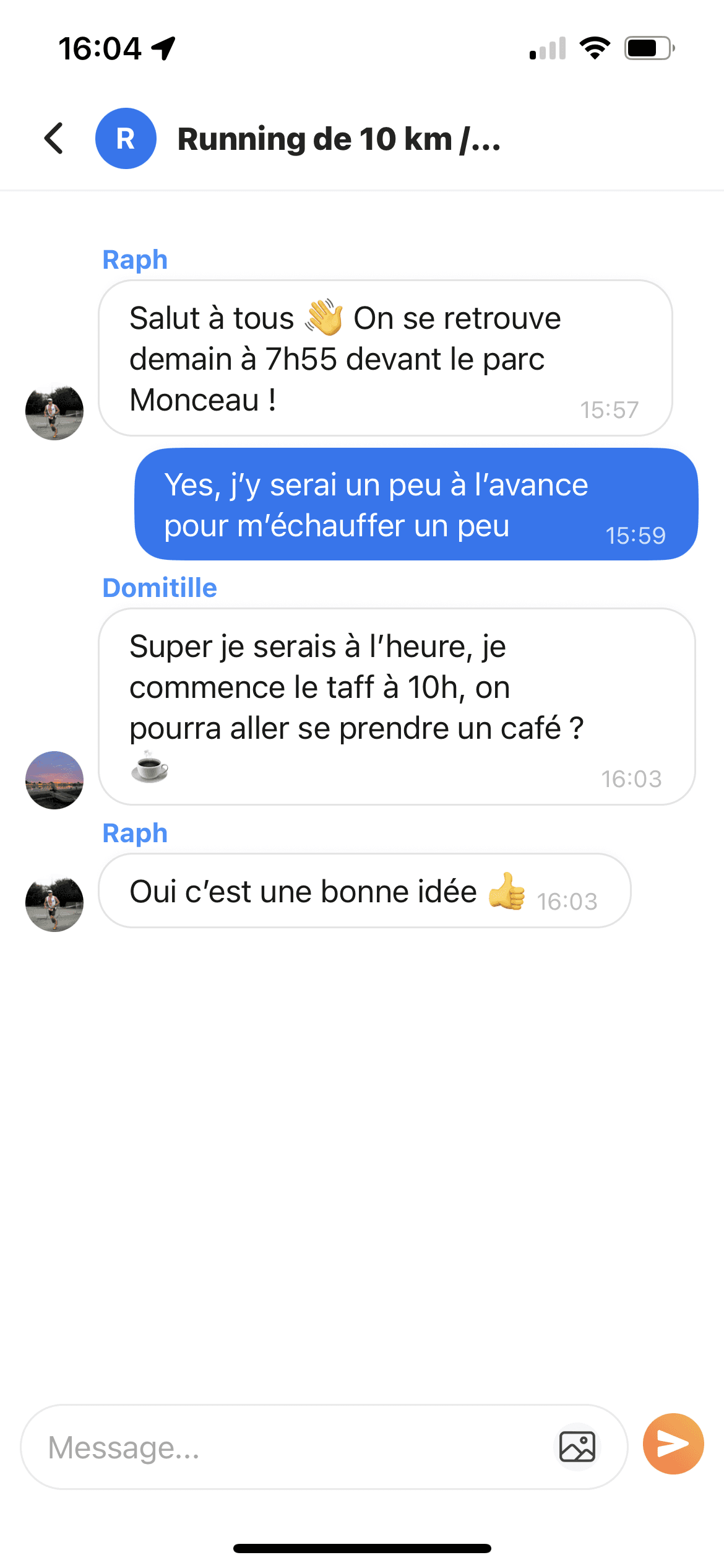 "Je ne fais plus de sport seule et j’adore ça. L’appli m’a vraiment aidé à bouger plus et rencontrer des gens motivés comme moi. Je recommande à fond !"